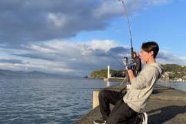 ☆☆釣り師なんぼおんねん☆☆堤防の上からこんにちは!池田建設の釣りキチ三平こと、福永喬介です!先日、同期の木原さんと松村駿くんと萩に釣りに行ってきましたその時に大物がかかったと思いきや、釣れたのは大縄でした…。そんな僕を励ますように、虹が二重でかかっていました今度こそ、大物を釣り上げます!!