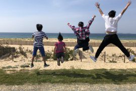 ☆☆青い空!青い海!家族でJUMP!!☆☆いえとち本舗周南店の白川です。まだコロナが落ち着いている先日、家族で海の中道へ行ってきました。青い空青い海が気持ち良すぎてテンションMAXでこどもたちと思いっきりジャンプ‼︎気分最高です!ジャンプ力もまだまだこどもには負けません 笑 意外と飛べた自分に感動!笑コロナで県外になかなか出ることができませんが、少しでも早く落ち着いてまた家族で行けたらいいなと思います。