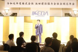 ~社内行事 忘年会~協力会社様をお招きして、池田建設主催の令和元年 忘年会を開催しました! 池田社長からの重大発表の挨拶を始めとして、よさこいやっさん演舞2021年度内々定者ボディビルパフォーマンス2019年度入社社員挨拶新人賞などの社員表彰式リーチカズマイケルパフォーマンスのエンディング動画多数の催し物もあり、笑顔が溢れる忘年会でした♪来年は更にパワーアップした忘年会をしていきたいです★\「協力会社様!来年度も池田建設を宜しくお願い致します!/