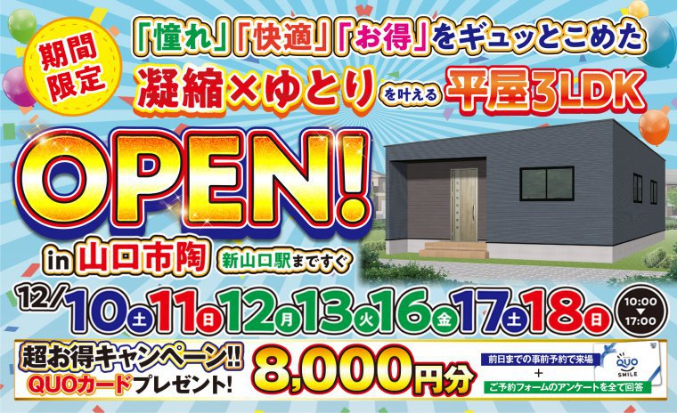 【山口市】「憧れ」「快適」「お得」ギュッとこめたお施主様邸の平屋3LDK OPEN HOUSE!