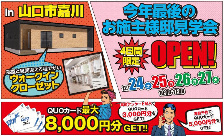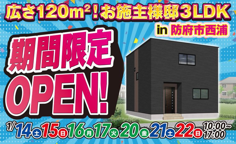 【防府市】広さ120m²!お施主様邸3LDKが期間限定OPEN!