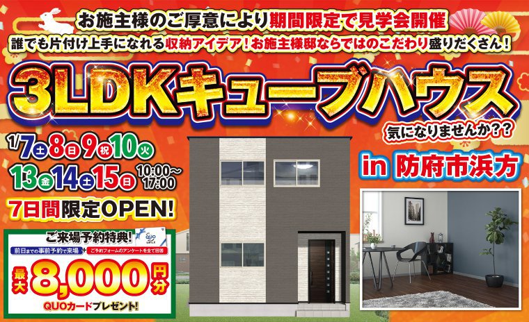 【防府市】実用的な収納アイデア!お施主様邸のこだわり盛りだくさんの3LDKキューブハウス期間限定公開!