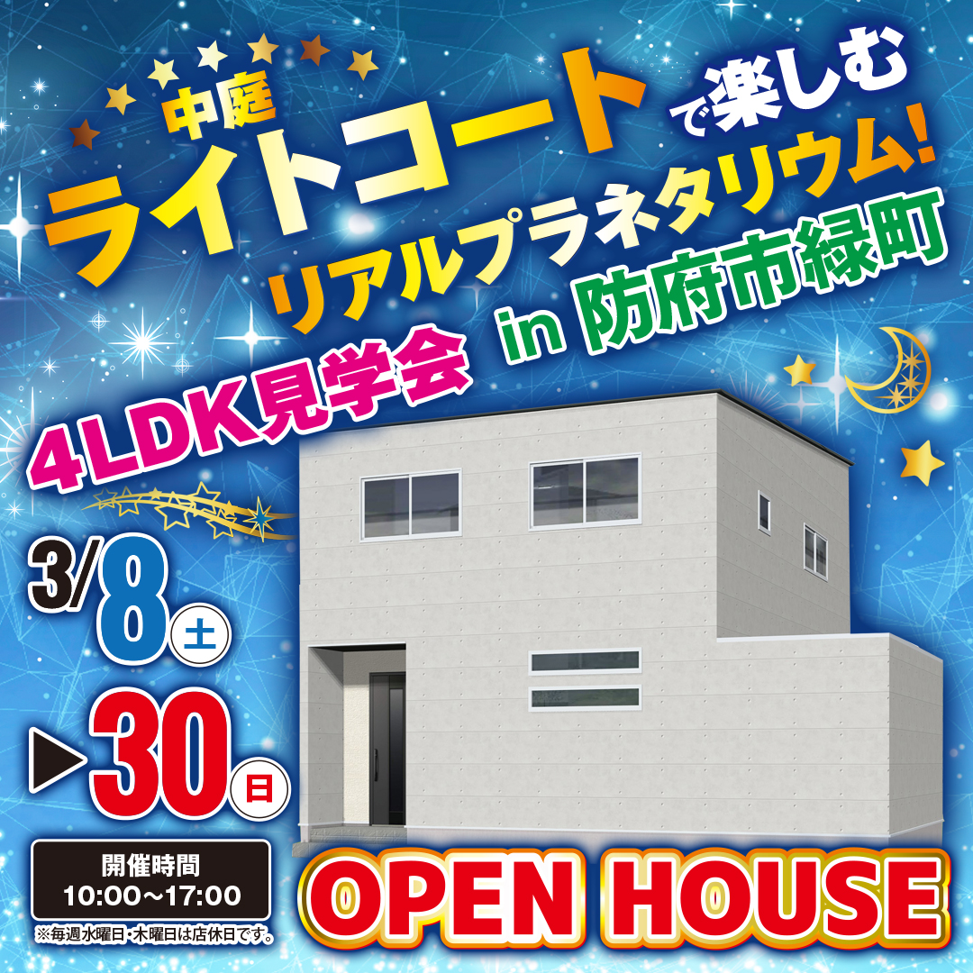 【防府市】ライトコートで楽しむリアルプラネタリウム★防府市緑町で4LDK見学会開催!