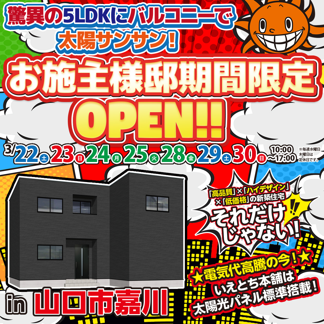 【山口市】納戸付き5LDK!家族におすすめの、収納力抜群2階建て見学会が山口市嘉川でOPEN!