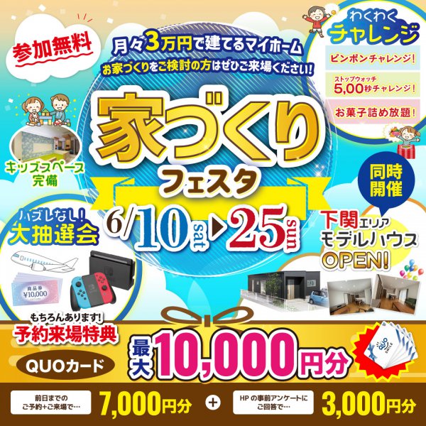 【下関店】来場特典盛りだくさん!家づくりフェスタ