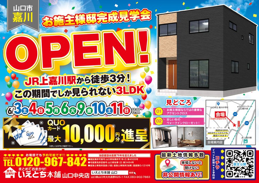 【山口市嘉川】1週間限定!お施主様邸3LDK大公開!JR上嘉川駅から徒歩3分!