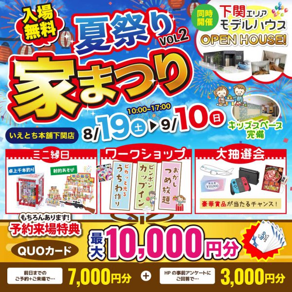 【下関店】家祭りVOL2!来場予約でクオ1万円プレゼント!イベント盛りだくさん!