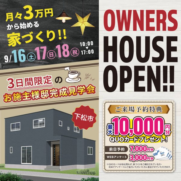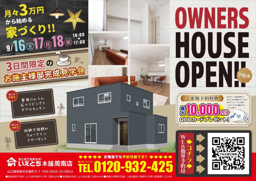 【周南店】お施主様邸現場見学会 来場予約で最大1万円クオカードプレゼント