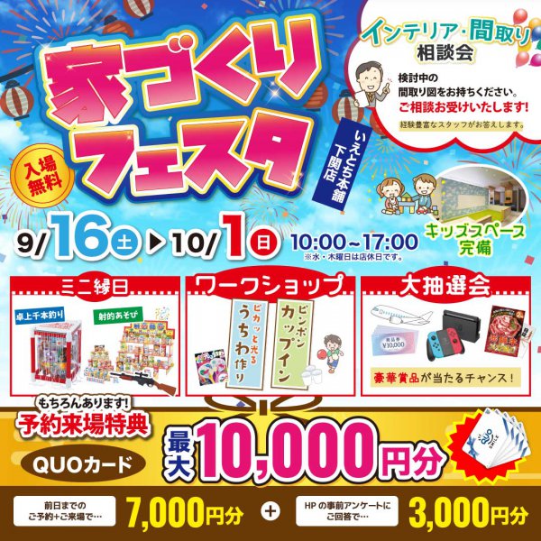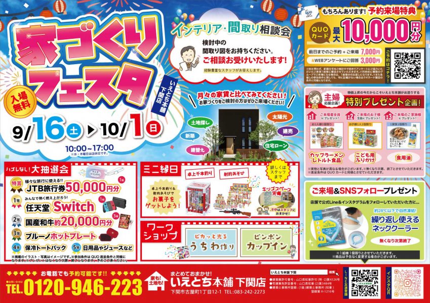 【下関店】家づくりフェスタ!来場予約でクオ1万円プレゼント!イベント盛りだくさん!