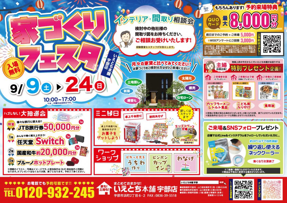 【宇部店】家づくりフェスタ!来場予約でクオ8,000円プレゼント!イベント盛りだくさん!