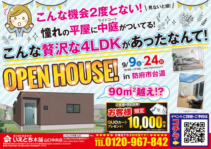 【防府市】憧れの平屋に中庭まで!贅沢な4LDKが期間限定OPEN HOUSE