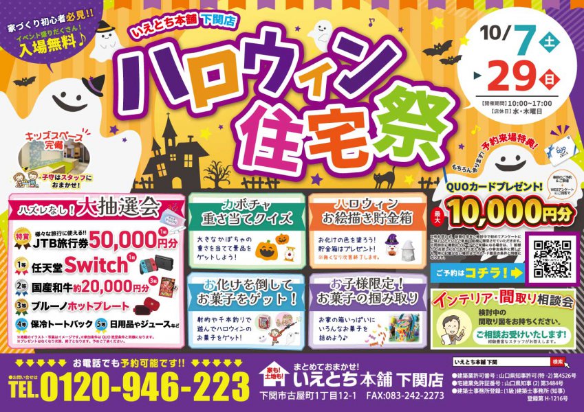 【下関店】ハロウィンイベント開催!来場予約でクオカード1万円プレゼント♪