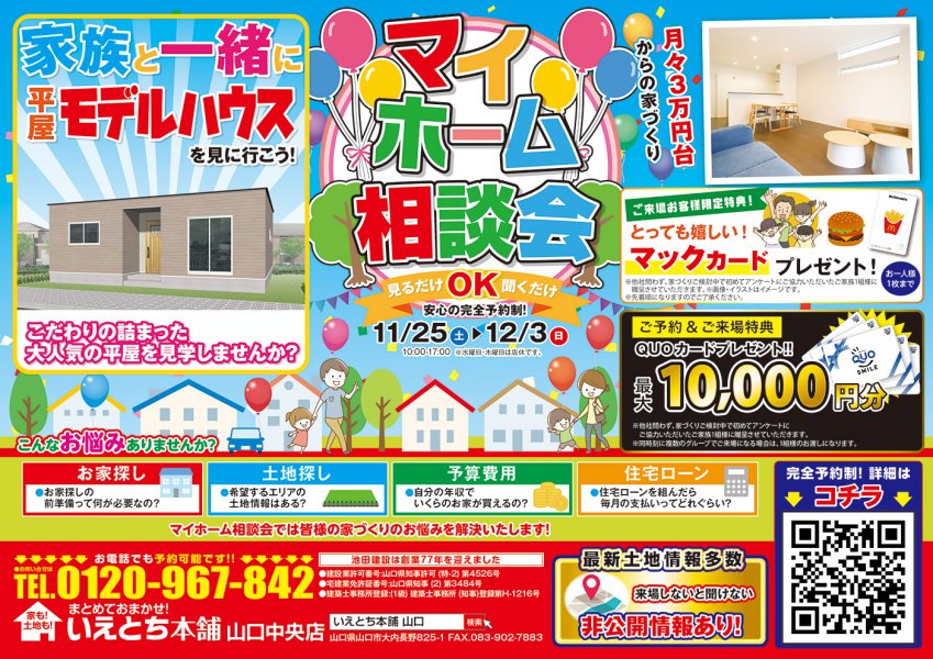 【山口市】平屋を見学してQUOカードにマックカードももらえるチャンス!