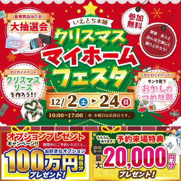 【周南店】クリスマスマイホームフェア!来場予約でクオカード2万円分プレゼント