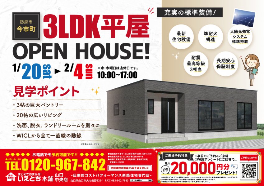 【防府市】今市平屋見学会!来場予約でクオカードプレゼント