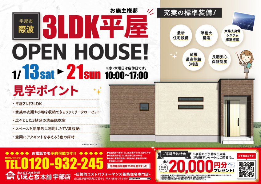 【宇部市】際波でお施主様邸見学会!来場予約でクオカード2万円プレゼント