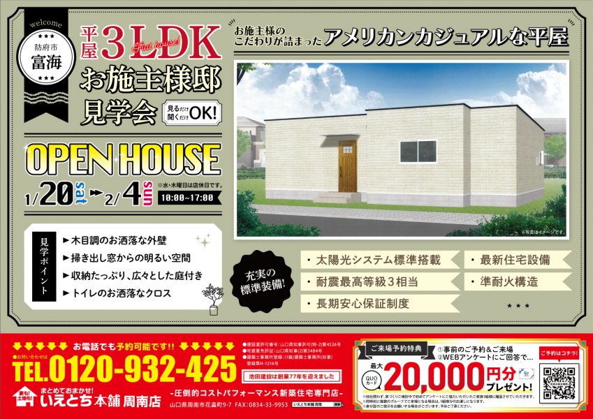 【周南店】防府市富海 お施主様邸平屋見学会!来場予約でクオプレゼント♪