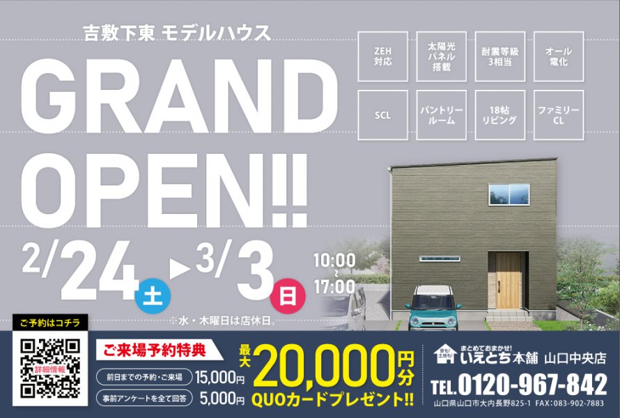 【山口市】吉敷下東の31坪2階建て3LDK OPEN!