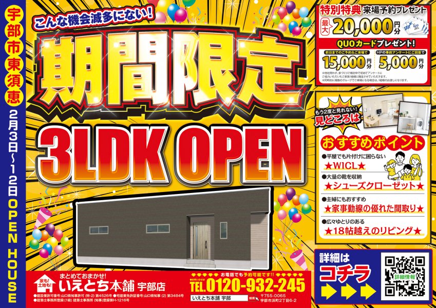 【宇部市】東須恵で期間限定3LDK OPEN!こんなお家を見れる機会は滅多にない!