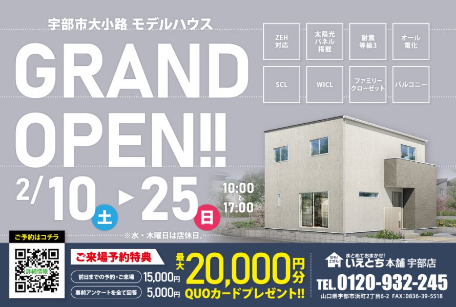 【宇部市】大小路の2階建て3LDK見学会開催!今ならQUOカード最大20,000円