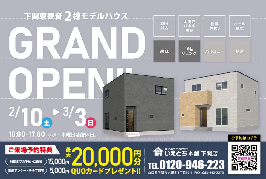 【下関】東観音で豪華2棟見学会!今ならQUOカード最大20,000円