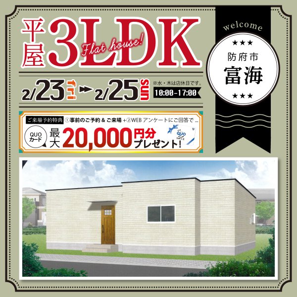 【周南店】防府市富海 お施主様邸平屋見学会!来場予約でクオプレゼント♪