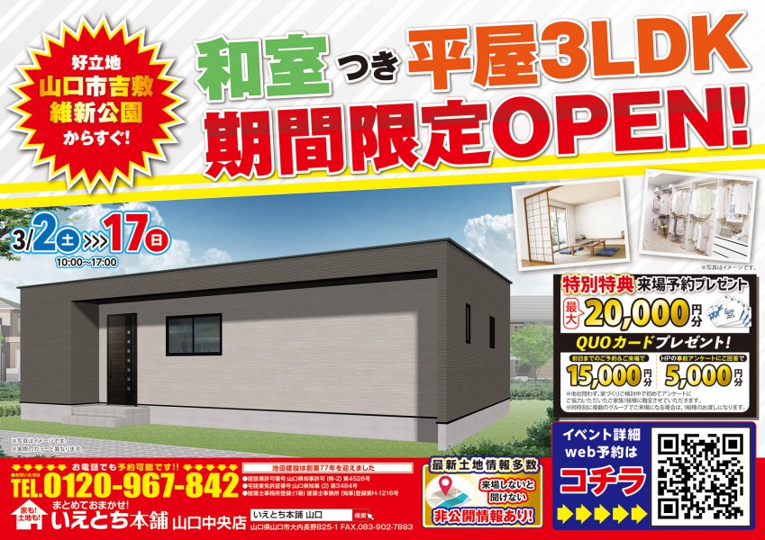 | 場所 | 山口市吉敷下東4丁目3168番1 | 時間 | 10:00~17:00 |