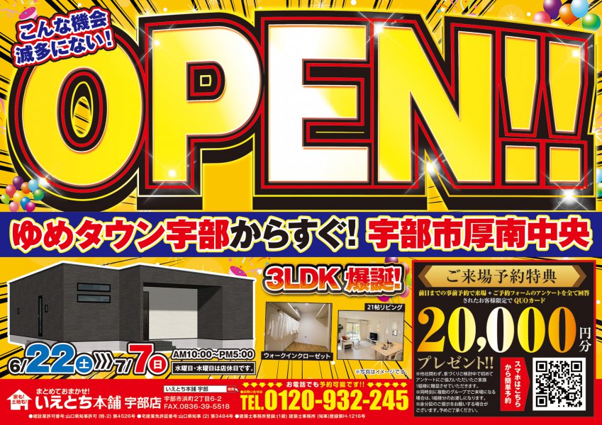 【宇部市】ゆめタウン宇部からすぐ!厚南で平屋見学会開催!