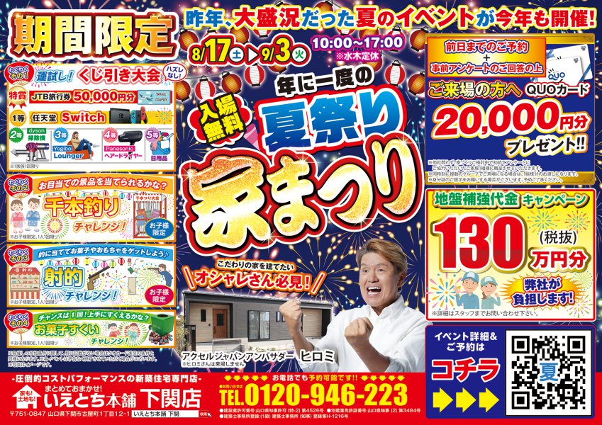 【下関店】毎年大好評!最大QUOカード20,000円が貰える夏祭りイベント
