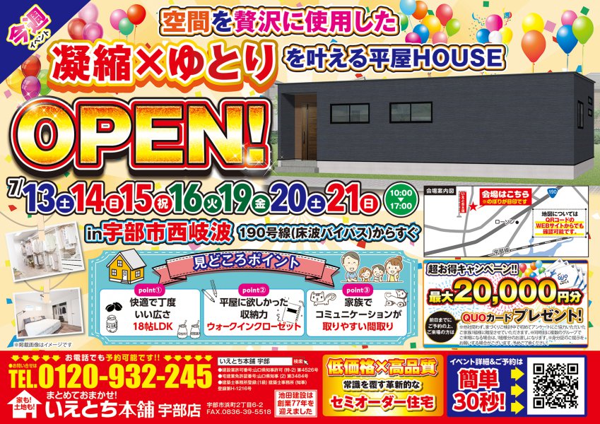 【宇部市】空間を贅沢に使用した、平屋ハウスが西岐波にOPEN!
