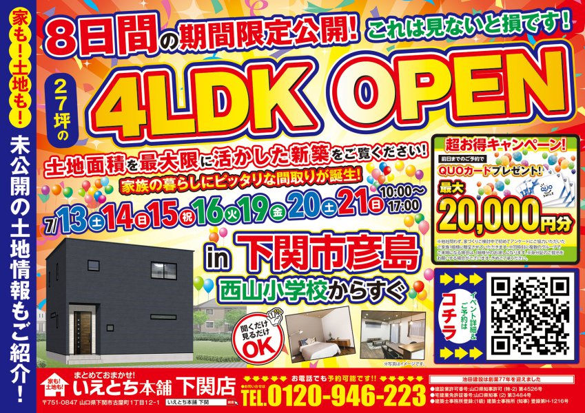 【下関市】8日間の期間限定!見ないと損です♪彦島で2階建見学会開催!