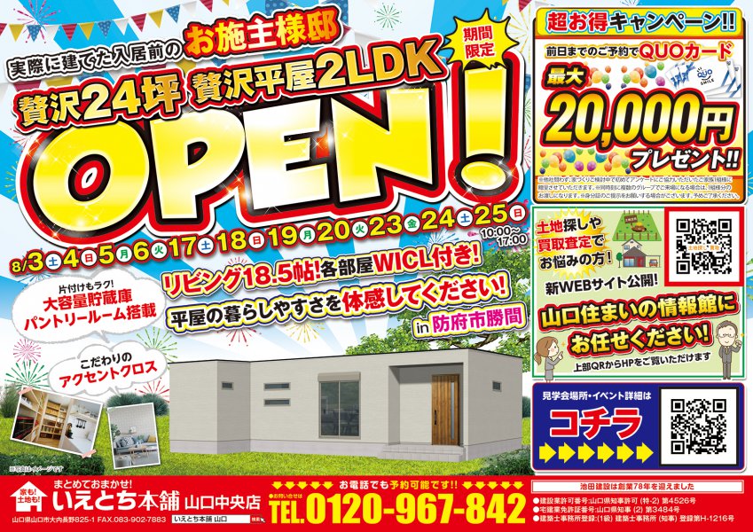 【防府市】贅沢24坪2LDK!!勝間で平屋見学会開催☀