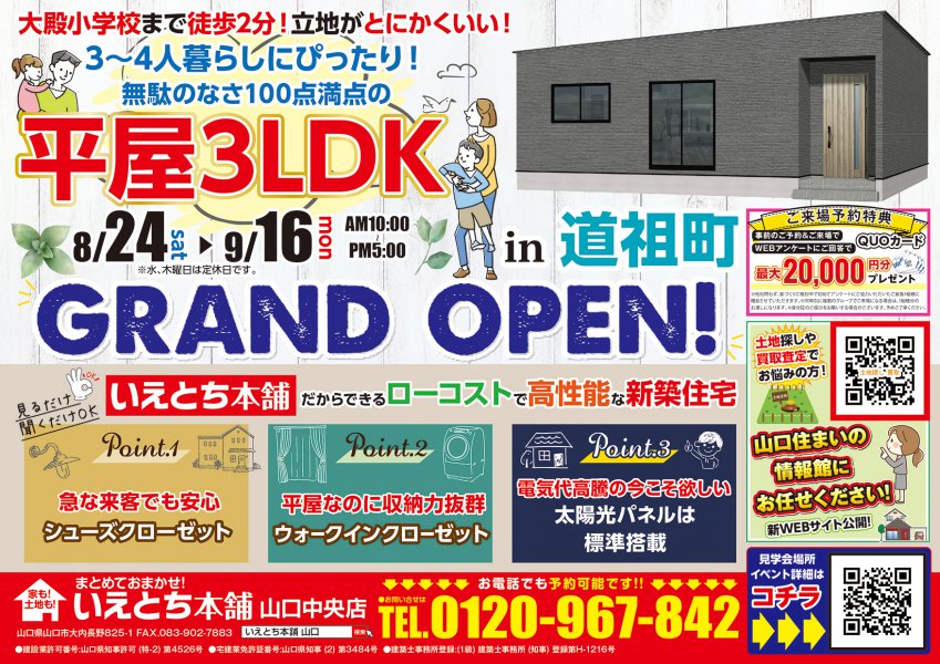【山口市】とにかく立地がいい!大殿小学校から徒歩2分の道祖町分譲で見学会開催!