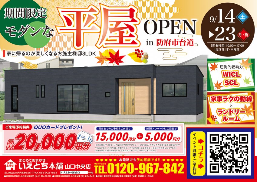 【防府市台道】期間限定!モダンな3LDK平屋見学会OPEN!
