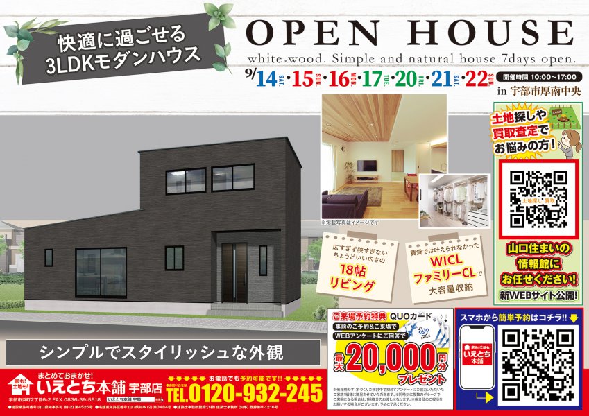 【宇部市厚南中央】快適に過ごせる3LDKモダンハウス、期間限定OPEN!