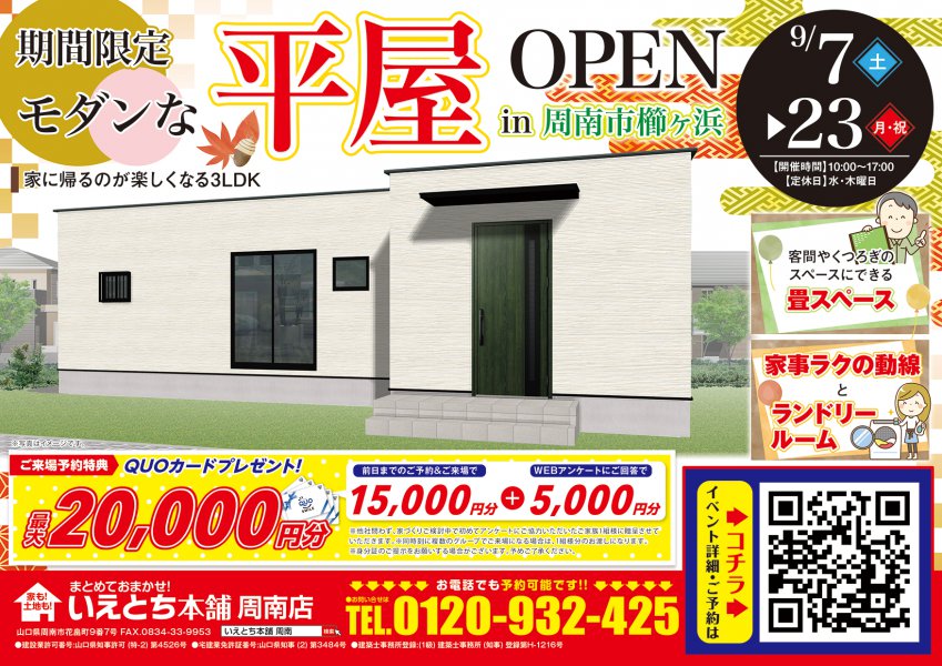 【周南市櫛ヶ浜】駅からすぐ!平屋3LDK 見学会