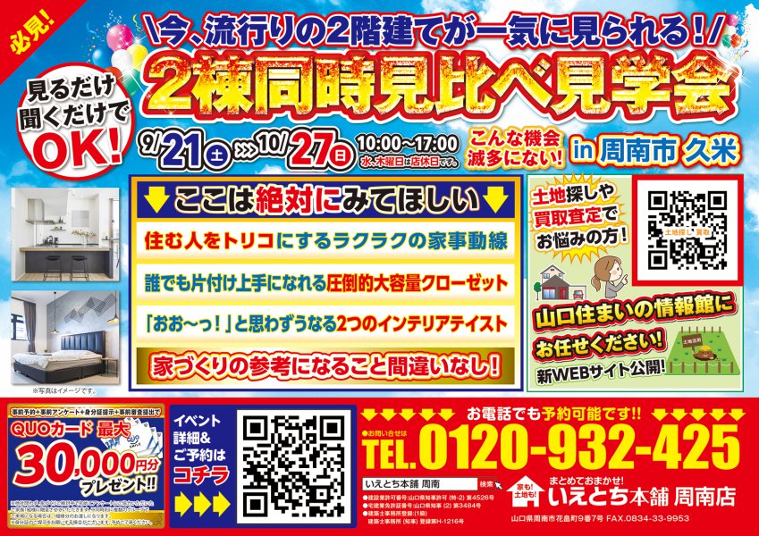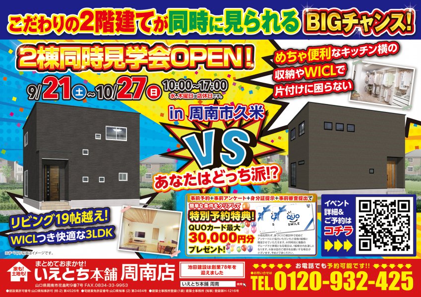 【周南市久米】2棟の新築をご覧ください!違いがわかる見学会