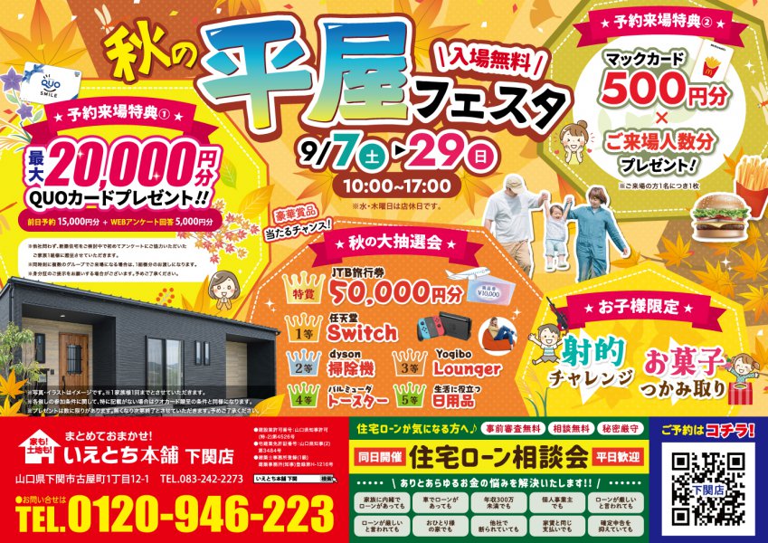 【下関店】入場無料!いえとち本舗*秋の平屋フェスタ開催!