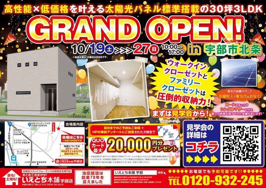 【宇部市】高性能・低価格を叶える太陽光パネル搭載!30坪3LDKが宇部市北条にOPEN!
