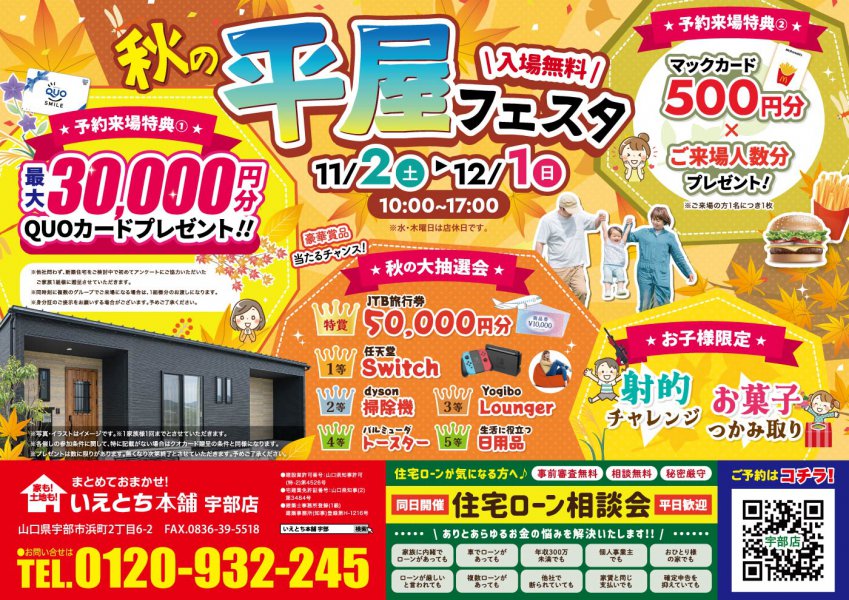 【宇部店】入場無料!いえとち本舗*秋の平屋フェスタ開催!