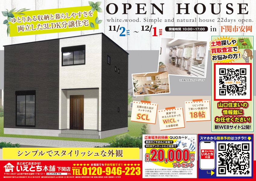 【下関市】ゆとりある収納と暮らしやすさを両立した3LDK!下関市安岡駅前で2階建見学会