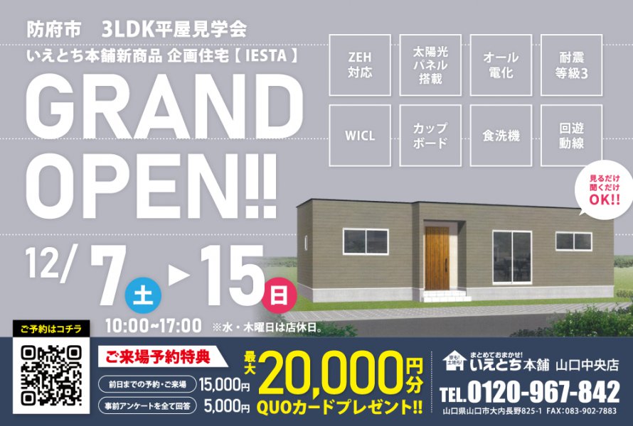 【防府市】防府市田島で3LDK平屋*大注目!いえとち本舗新商品『IESTA』誕生!