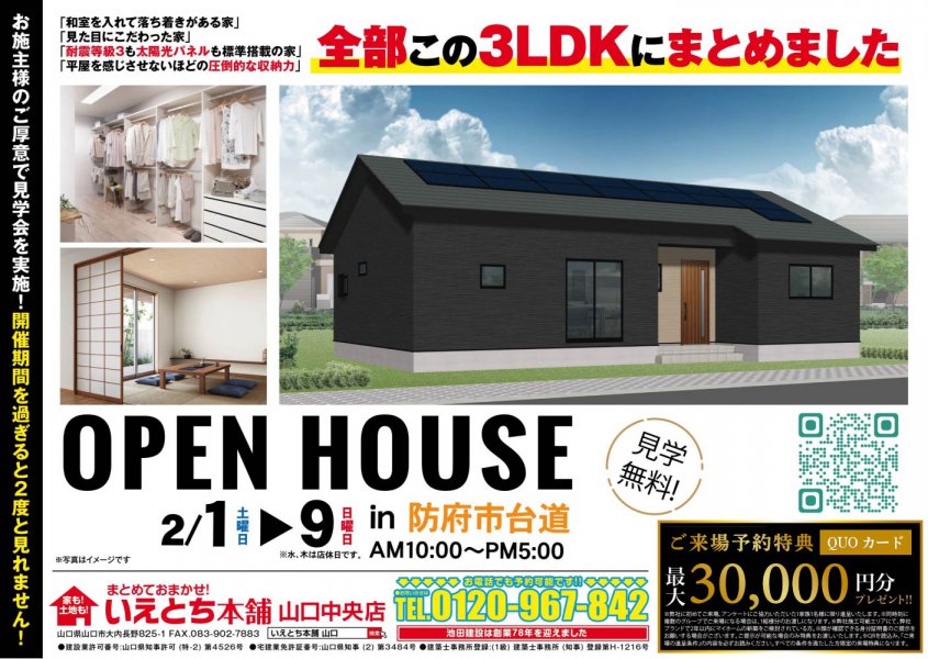 【防府市】全部この3LDKにまとめました!防府市台道で今しか見られない見学会OPEN‼