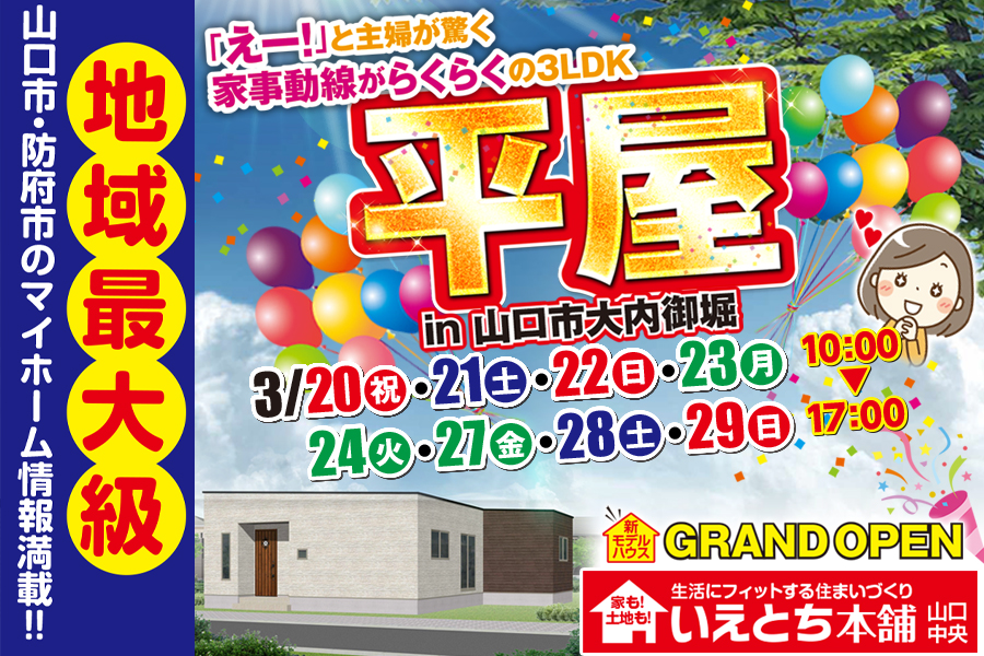 【山口市大内御堀】北欧風デザインの平屋3LDK GRAND OPEN!