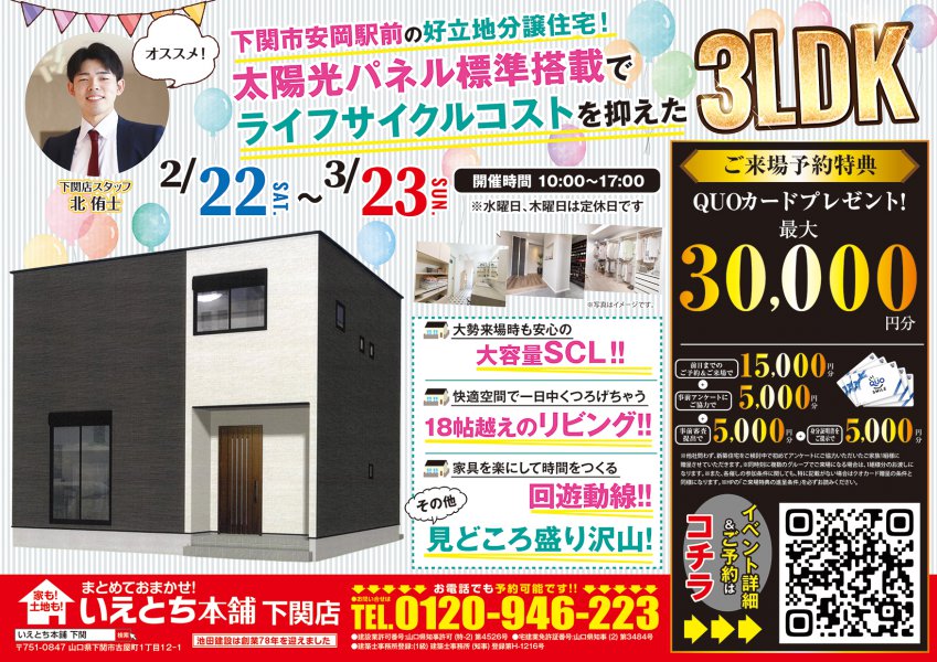 【31坪・下関市】安岡駅からすぐの好立地!収納力抜群の3LDK見学会開催!
