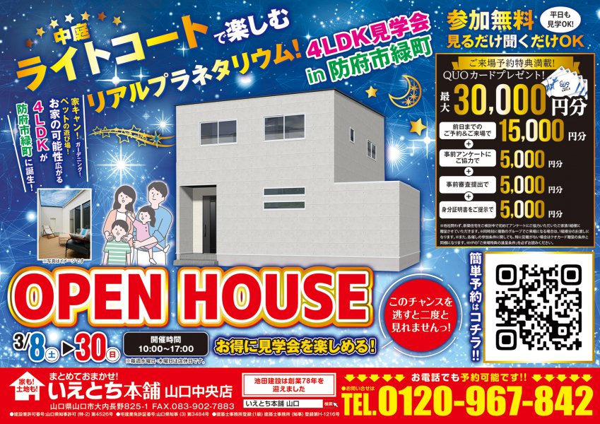 【防府市】ライトコートで楽しむリアルプラネタリウム★防府市緑町で4LDK見学会開催!