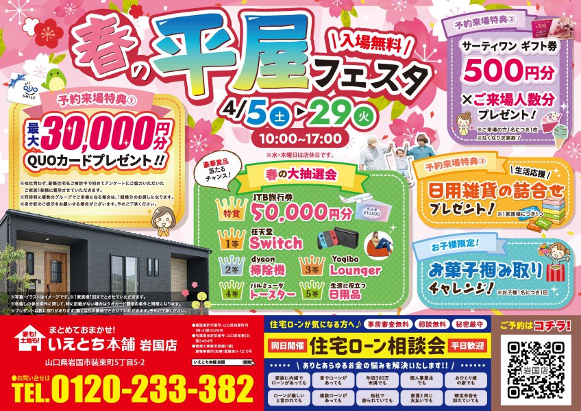 【岩国店】入場無料!いえとち本舗で春の平屋フェスタ開催❀