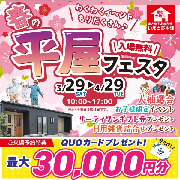 【長門店】入場無料!いえとち本舗で春の平屋フェスタ開催❀