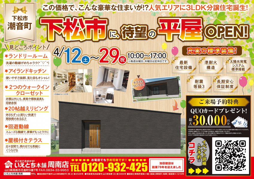 【下松市】人気エリアに3LDKの平屋がOPEN!「この価格でこんなに豪華な平屋!?」ぜひ実際にご覧ください!