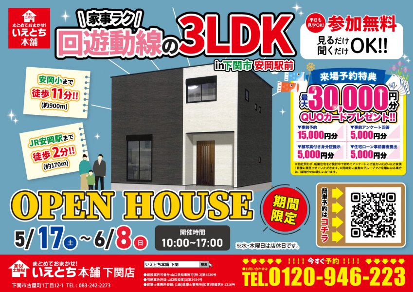 【31坪・下関市】安岡駅からすぐの好立地!収納力抜群の3LDK見学会開催!